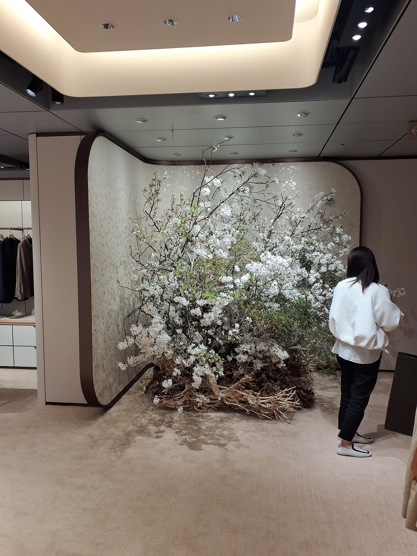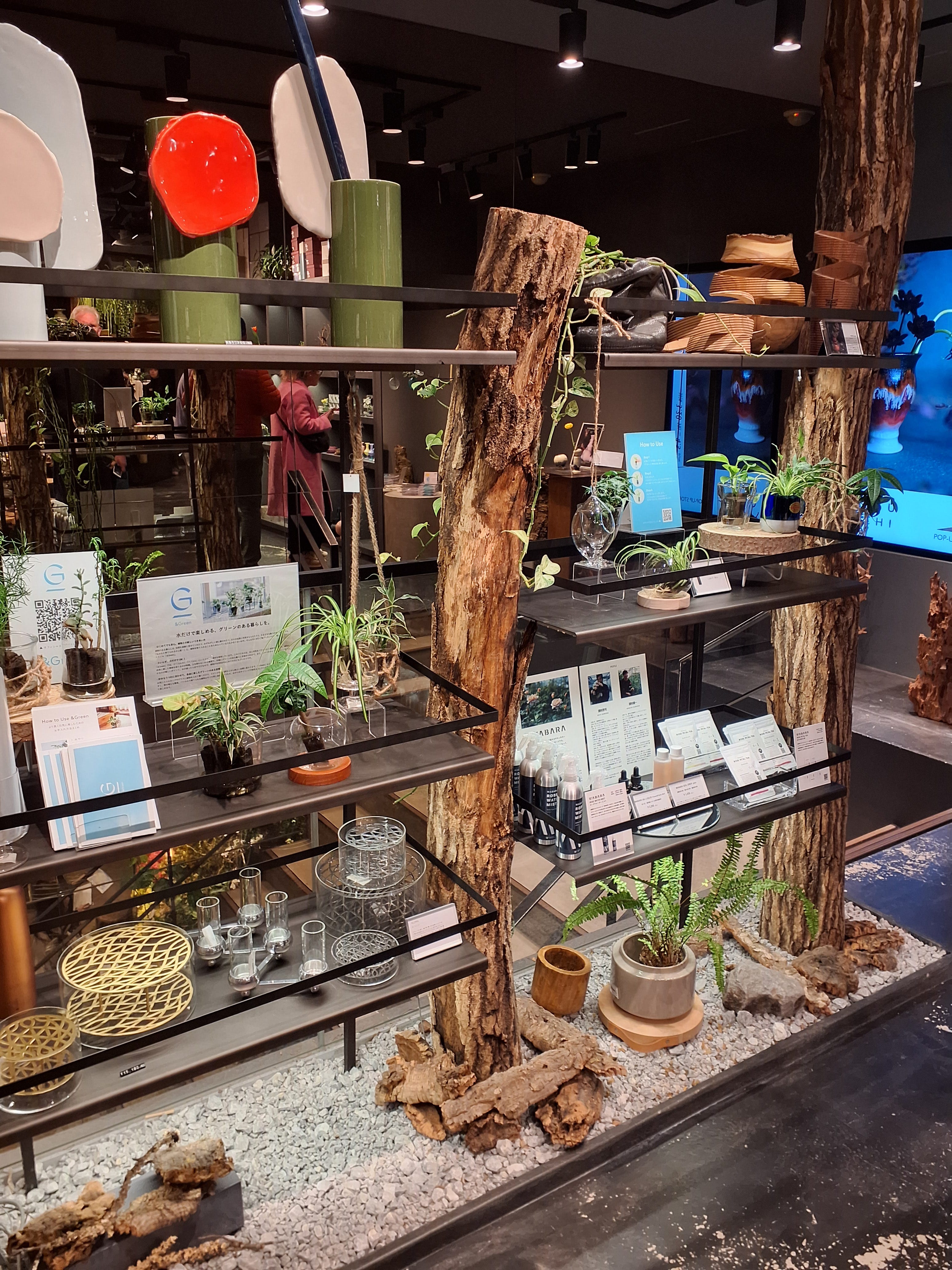 Im Edelwarenhaus Estantion wird Mode sehr kreativ mit Kunst und Natur verbunden. Wertvolle Bonsai-Bäume vom renommierten Bonsai-Kollektiv Tosho-en (桃松園) werden direkt neben den teuren Handtaschen und Accessoires von noblen Modemarken präsentiert. Auch andere Kunstgegenstände und Pflanzen werden mit den exklusiven Modekollektionen kombiniert und werten sich gegenseitig auf.