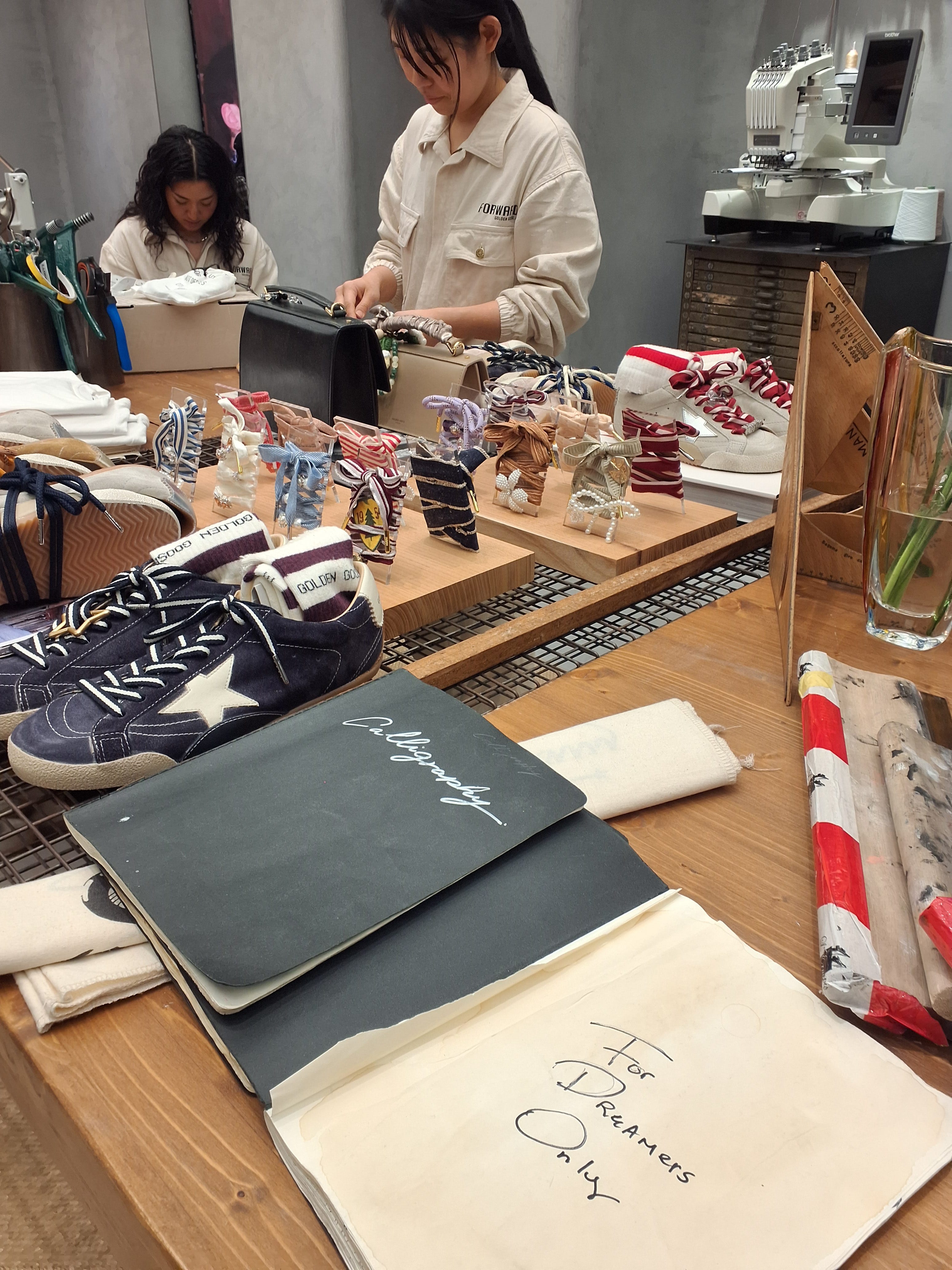 In ihrem Flagship-HAUS zeigt die italienische Modemarke Golden Goose, wie man über ein Ladenkonzept selbst in reizüberfluteten Einkaufsdestinationen wie Tokios Ginza-Distrikt Aufmerksamkeit weckt. Vor den Augen der Besuchenden wird an der Ware – Edelsneaker aus Leder – Hand angelegt: Mit handwerklicher Bearbeitung wird den Schuhen ein letzter Schliff verpasst, so dass den Kunden beim Kauf stets ein Paar Unikate ausgehändigt wird. Ganz nach Wunsch nimmt die Kundschaft Einfluss auf den finalen Look und verleiht den Sneakern durch Hinzufügen zusätzlicher Accessoires, Schnürsenkel und anderer Dekors eine individuelle Note.