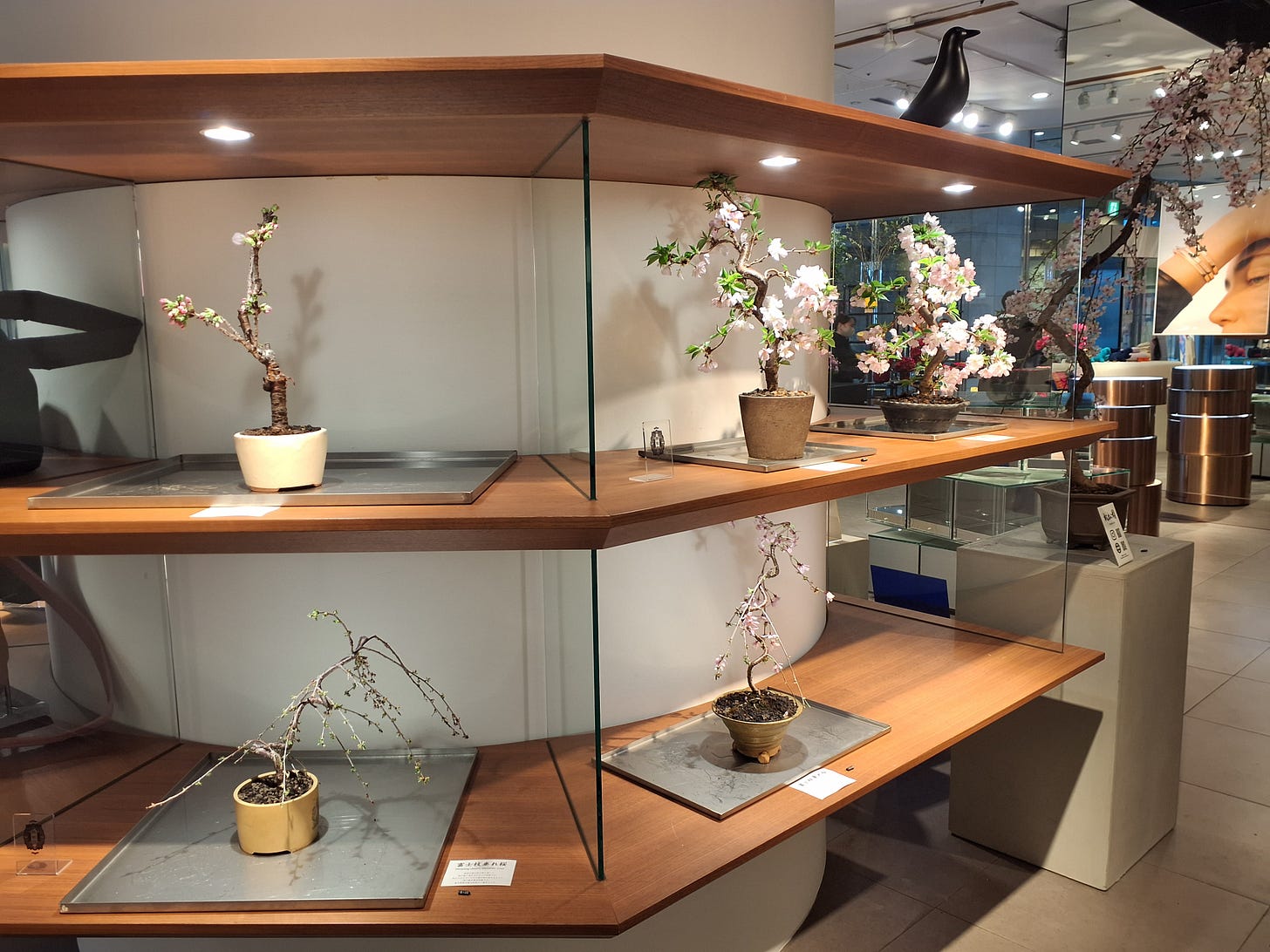 Überall in Tokio werden die Warenpräsentationen durch zuweilen aufwändige, echte florale Installationen aufgewertet. Andererseits finden parallel auch verschiedene Ausstellungen mit Kunst und Kunsthandwerk statt, die immer öffentlich zugänglich sind.